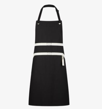 Keukenschort in katoen met beige afwerking en aanpasbaar aan de nek