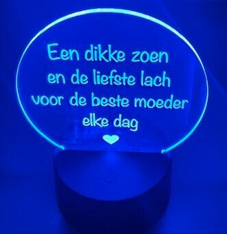 Dit lichtgevend sokkeltje met plexi plaatje kan gegraveerd worden naar wens